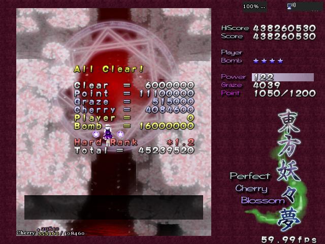 ふ、ふふふふふうふふふうふふうふうふ・・・ Hardクリア、遂にキタ━─━─━─━─━─(゚∀゚)━─━─━─━─━─!!!! 反魂蝶の終了で桜点大量流出する演出は東方最高の魅せ場ですが、反魂蝶終了直前でレーザーに焼かれて桜点の演出が無かったのにはガクッときたwwww まぁ、これはタイミングの悪さと自分の腕を恨むしかないなぁ。 それでも、クリア出来たことに軽く涙腺が緩みかけました。手汗も凄くて体も熱くて仕方なかったですwwww ああwwwww文字なんかじゃあの時の気持ちを表現しきれないwwwww Hardでこれなんだから、Lunaなんかクリアした日にはやばいな・・・。 記念にリプレイでも置いときますので、興味のある方は観てやってください。Hard余裕だって人はプギャーでもなんなりとwwwwww ■ プレイについて言うことは、4面道中後半がパターン崩壊してgdgdになってしまったこと。(4面道中前半、5面道中も若干gdgd) でも、1000エクステンドを果たせたので良し。 もっと気楽にやれば、残2以上残して安定クリアも出来るかもねぇ 妖々夢Hardのクリアも果たし、大きな目標を達成したというわけで、改めてこれからの目標でも書き並べてみる。 最有力としては、 ・妖々夢Lunaticに挑戦 ・紅魔郷Hardクリア ・スペルプラクティスを埋める ・文花帖Ex開放(残り2枚・・・) 程々に考えてるのは、 ・妖々夢Hard残2以上安定クリア(目標エクステンド1000,1200) ・風Ex全タイプクリア ・地Exクリア まだ書くことあるけど、Hardクリアで疲れがどっと溜まったので寝ます。。。 PR |