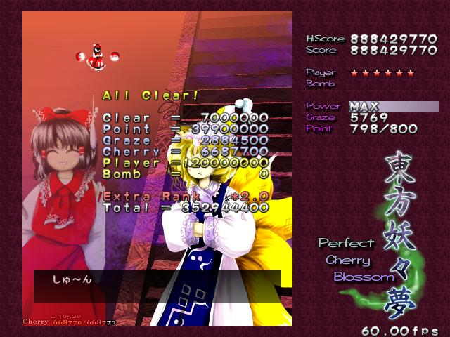 ■←霊夢Bリプレイ 8,88億 桜点66,8万 残6ボム0 2000万程度更新。 一応ノーミスクリア。(通常3で結界割られた) 点符798って・・・。800エクステンドしてたら9億だったのにorz 道中はほとんど回収したはずだが・・・。 もしかしてプリンセス天狐を画面下で撃破したせいかもorz 今更グレンラガン見始めたけど、すごい熱い・・・。 カミナァァァァァァァァ・・・(´;ω;`) PR |