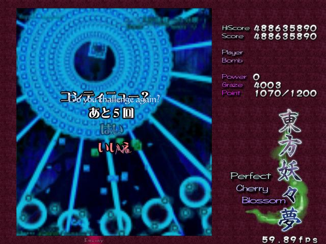 MOFはノーマルのラストの中では簡単なほうで何度も取得してるから まさか落ちるとは思わんかったぜ・・・。 反魂蝶 -八分咲- 残り14秒。 これが過ぎれば妖々夢ルナティック初クリアになるはずだった。 ヒロカワで3ボム抱えなければ・・・。 6面に入って緊張が走ったのか道中で3ボムぶっぱ、 必滅、通常3への段階移動と同時にボムをするくらいのチキンだったのに 何でヒロカワで抱えてるんだよ・・・。 ■←ヒロカワで3ボム抱えたリプレイ PR |