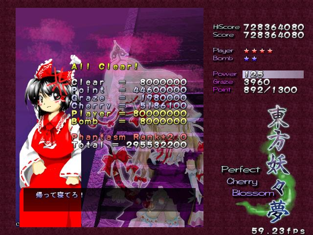 ちなみに霊夢AでPhハイスコアを叩き出した。