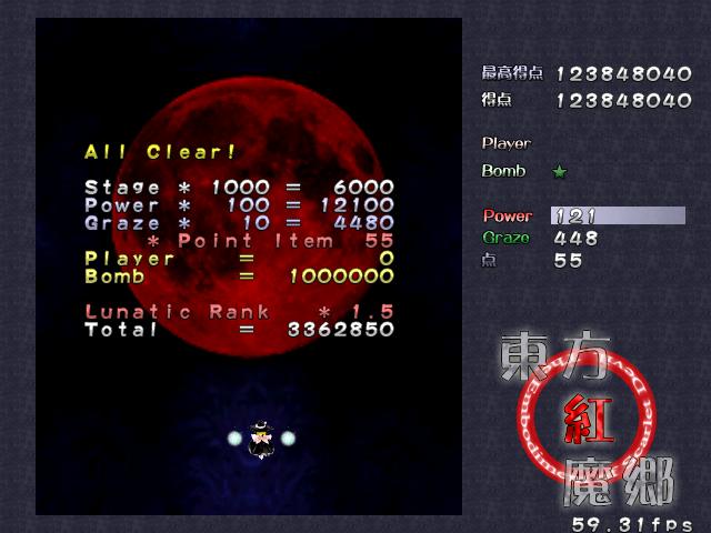 9000万到達したけど、グレイズポイントでかすりに集中し過ぎて時間切れで弾消し点を得られなかったという致命的な糞ミスを4回やらかした。 上記を含めて全部繋げられたとして、1億までどうやって行くんだろう^q^ 紅E1億↑のリプレイは見てないです。 PR |