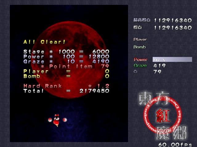 ■←霊夢B 1,1億 残0ボム0 紅Hクリアキタ━━━━━ヽ(゚∀゚)ノ━━━━━!! いや、まさかアレでクリア出来るとは・・・。 今でも驚きが隠せない。 5面突入時点で残2ボム0でクリアは無理と高を括ってたけど、 まさか道中をノーミスノーボムで突破するとは・・・。 そして、レミリア到達時点で残0ボム4という絶望の状態で\(^o^)/オワタ と思いきや、千本の針の山で残0ボム0の丸裸状態から何かが憑依して 吸血鬼幻想、マイスタ、紅色の幻想郷を連続で取得するという奇跡が起きた。 そういえば、千本の針の山から全くの初見だったな・・・。 ここまで気持ちの良いクリアは久しぶりかもしれない。 そんなわけで、全作Hardクリア達成を果たせた。ようやく! PR |