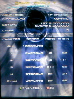 3回挑戦したけど、クリアできねー(´・ω・`) まあ、アケ版では初めてC5突入出来たので進歩っちゃ進歩ですね タゲリ第一形態で死ぬとは思わなかったけど XBLA版と比べると、 C2テロップ後歌鶫早回し地帯が処理落ちのおかげで落ち着いて出来たり、 C4テロップ前黒朱鷺を解放での捕捉がやりやすくなってたり等、 有利になってる部分が ただ、これは仕方ないことだがXBLA版の画質に慣れ過ぎてるせいか、 若干暗めなアケ版の画質に違和感を感じてしまい、視認的に不利な部分も… XBLAのHD画質で出来たら言うこと無しですね 斑鳩のあとはデススマイルズをなんとなく フォレットさんが強キャラ過ぎてノーパターンでもクリアできちゃいました もちろん峡谷不経由、notデスモードだがな 火山ステージでハイパー使ってアイテムジャラジャラが気持ち良い その後は自宅で斑鳩やって、石のような物体を打開出来なかったけど、 通しでタゲリを倒せたから概ね満足( ^ω^) 一応全チャプターAランク獲得のパターンは完成してるものだから、 無理してチェイン繋げようとして被弾とかあるある でも楽しいからストレスは少ない |